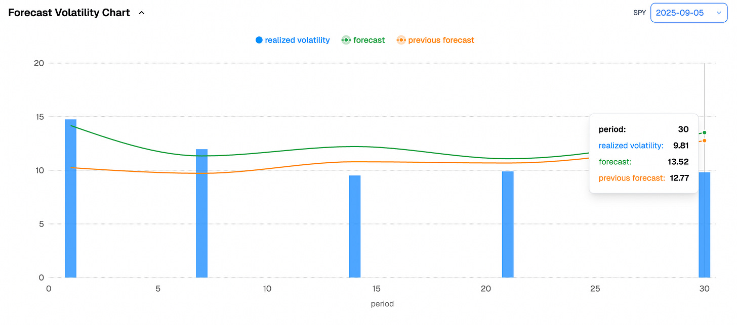 Our models currently show a 76% chance that realized volatility over the next 30 days will be higher than it is today. And in terms of magnitude, we expect it closer to 13–14 than the current 9.81. Remember: it is a margin game. If you are selling 14-15 now and we end up realizing 13–14 over the next month, that does not leave much room for error. Worse, if we take the paranoid view — that models are too generous, smoothing toward the average and, by definition, missing the unexpected — then a 17–18 realized print would be a pretty painful place to sit.