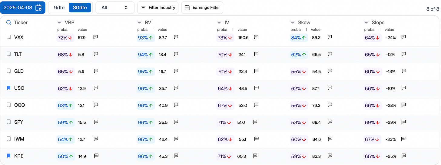 If you do not take advantage of that now, when will you? When the VIX is at 30, realized is at 35, and every tick in the underlying sends your PnL flying? For context, here is what our forecasts looked like back on April 8, when things were a bit messier than they are today.
