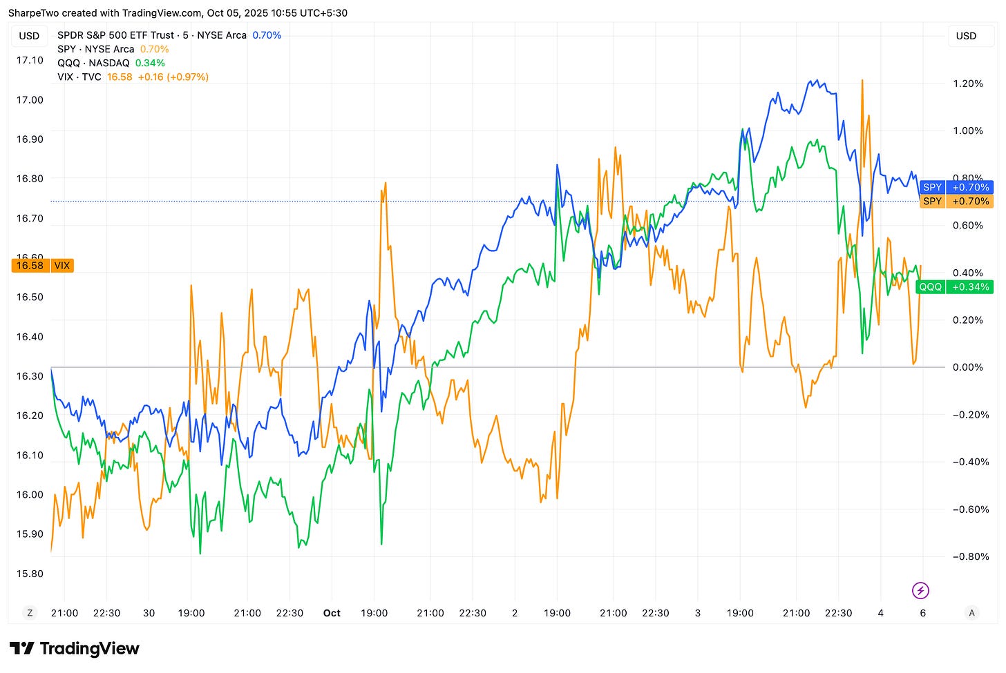 As expected, the VIX barely flinched — closing at 16.58, up from 15.82 — just enough to keep the wildest doomsday theories alive. Because Trump is mad. Because the government is shut. Because inflation is not going away. Because central banks are buying gold. Because gamma is concentrated and dealers will soon pull the rug. Because the job market is weaker than economists think. Because AI is a bubble. Because Western governments are broke.