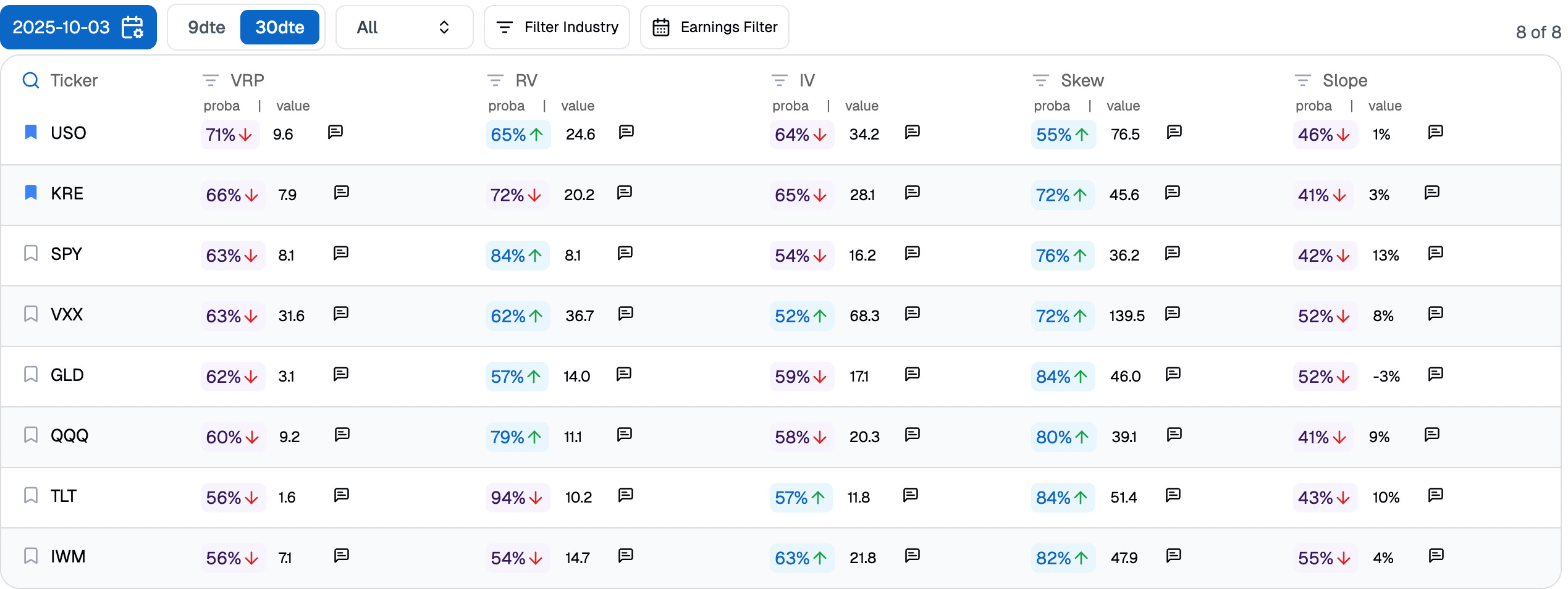 A 100% VRP in SPY is a first for us. We live and breathe forecasts and probabilities, and while a 63% forecast probability is not quite as high as we would like, we have never seen anything like this: the market is paying twice the realized movement — 16.2% implied versus 8.1% realized.