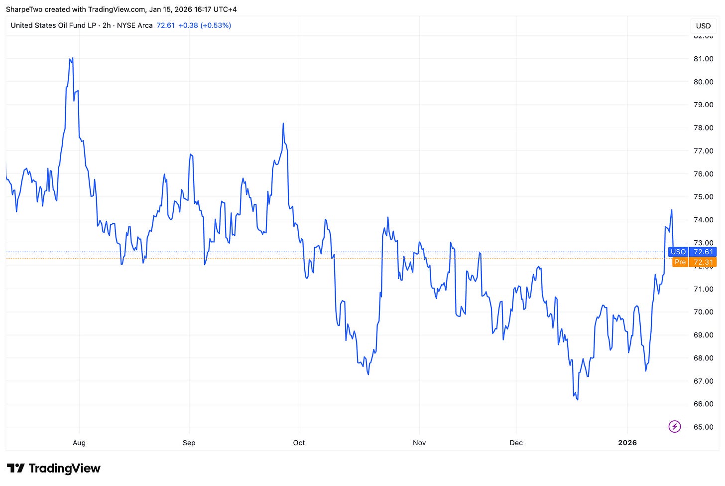 USO traded around $68 on January 2nd. We were almost 10% higher a few days ago, when the prospect of a US military intervention was growing more plausible by the hour. Since then, the tone has softened and, with it, the price of oil. But for how long? Once again, very smart who can predict that accurately.