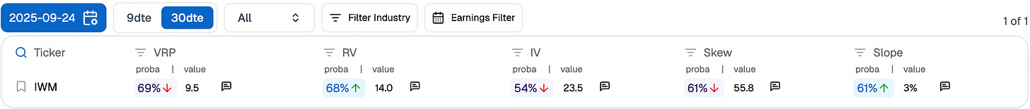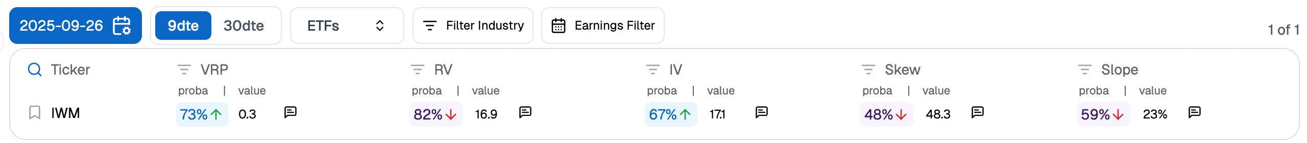 In our Signal du Jour two weeks ago, we highlighted an opportunity in the 230/260 strangle expiring October 31st in IWM. At the time, IWM was trading around 241, and we had no strong directional view. What we did know was that the market had been overpaying for hedges for months, and our forecasts showed no reason to expect a change this time.