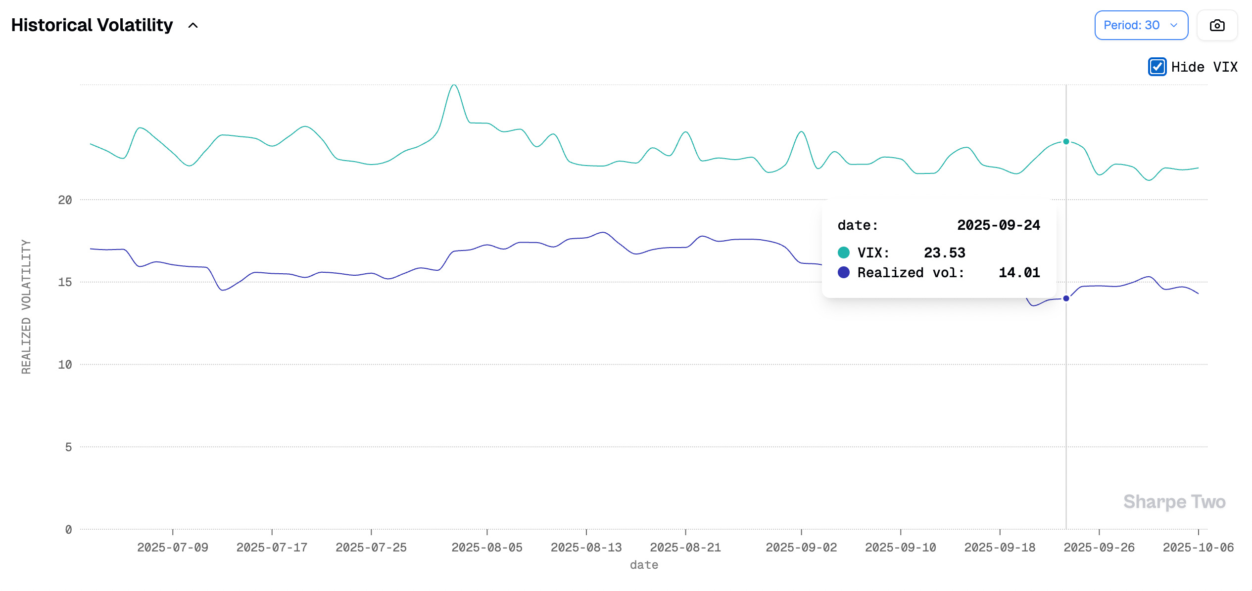 Now, the elephant in the room: if everything was going according to plan, should we have stayed longer and doubled the profit? A fair question. But early October brought strong short-term signals suggesting realized volatility might rise.
