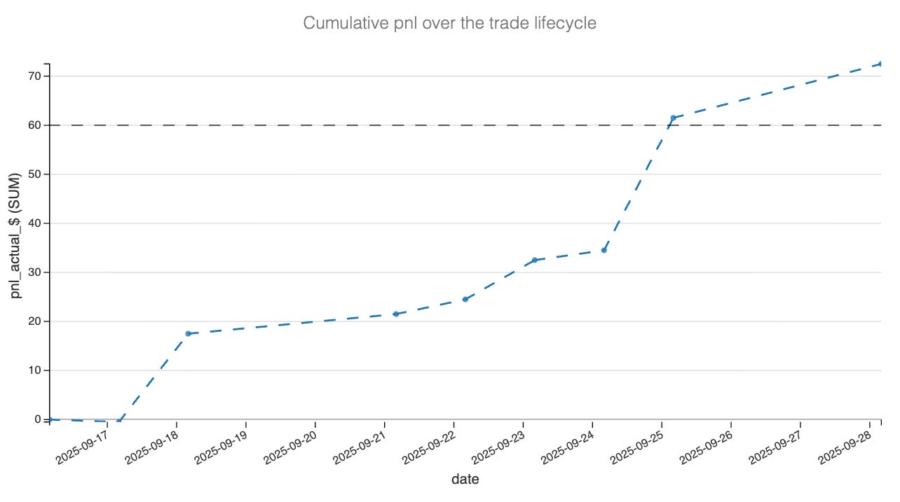 Profit target reached after 8 days in the trade: what was the reason behind the strong push in pnl end of last week?