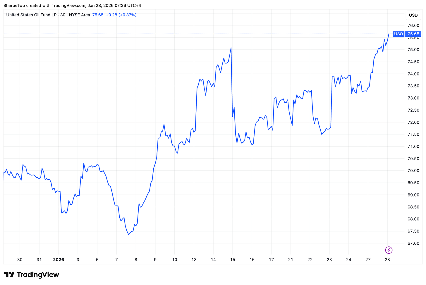 Contrary to the violent moves seen in tickers like SLV or BOIL, USO has been fairly contained. There was no terrifying trend fueled by constant buying pressure, nor a last-minute reversal erasing billions in market cap in minutes like we saw in Silver at the close on Monday. Truly, the underlying asset hasn’t really gone anywhere.