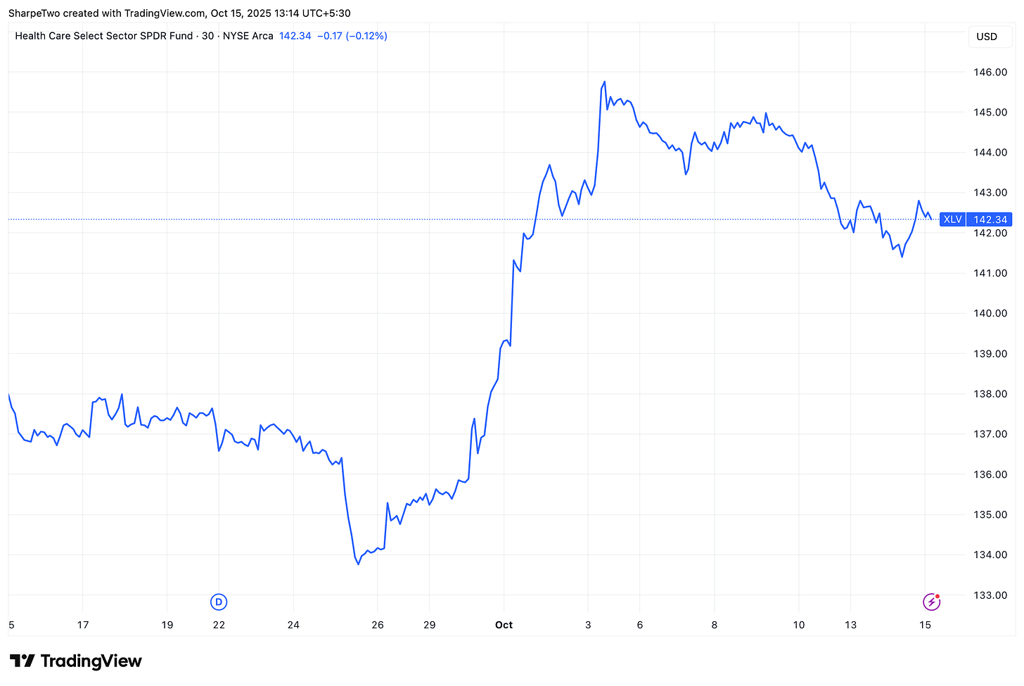 In our Signal du Jour two weeks ago, we highlighted an opportunity in the 136/152 strangle expiring November 21 on XLV. At the time, XLV had just rallied +6.5%, climbing from 134 to 142 after the FOMC announcement, as any immediate risk conveniently failed to materialize. Our forecasts then pointed to near-perfect conditions to harvest implied volatility in the ticker.